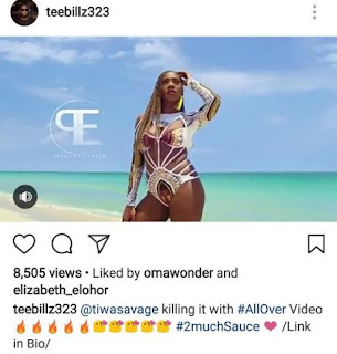 Tunji Balogun popularly known as TeeBillz has defended his singer wife, Tiwa Savage on Instagram, after a Fan criticized her recently released video – “All over”.